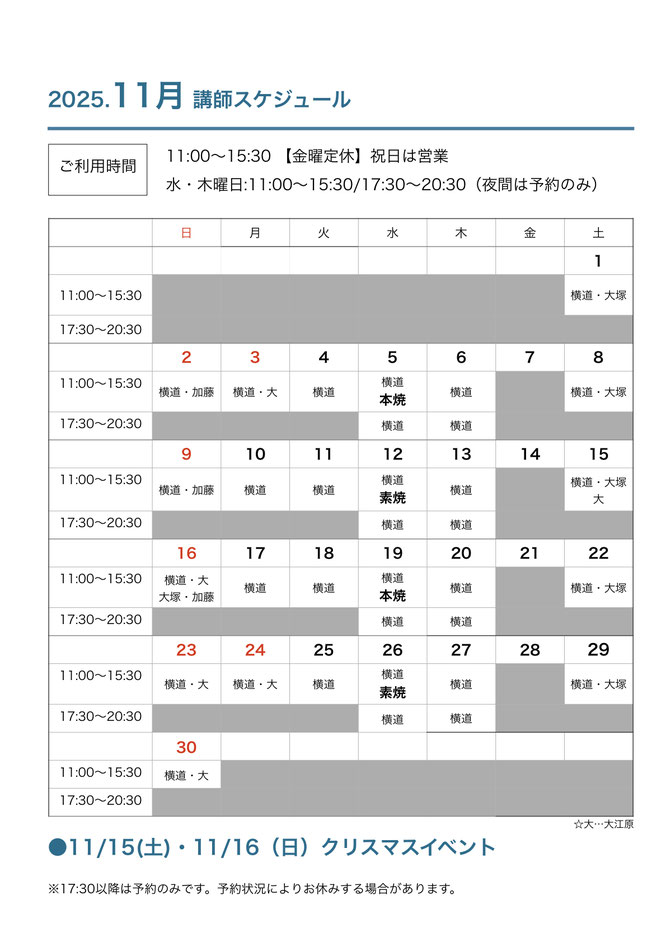 17:30以降は予約制です。ご予約状況により19:00閉店致します。